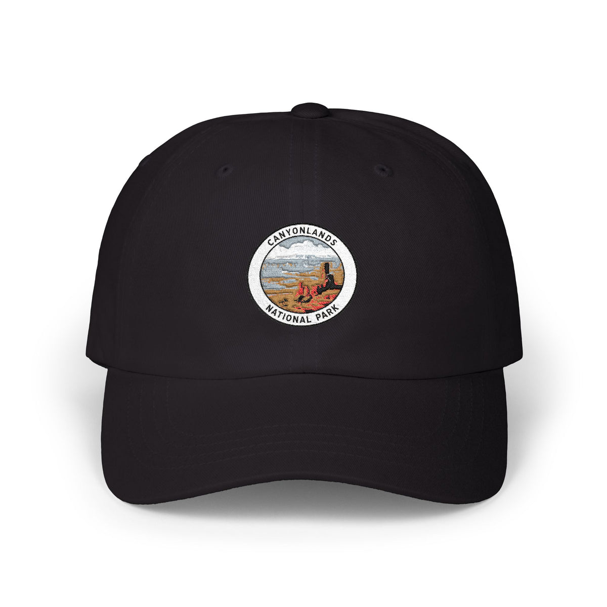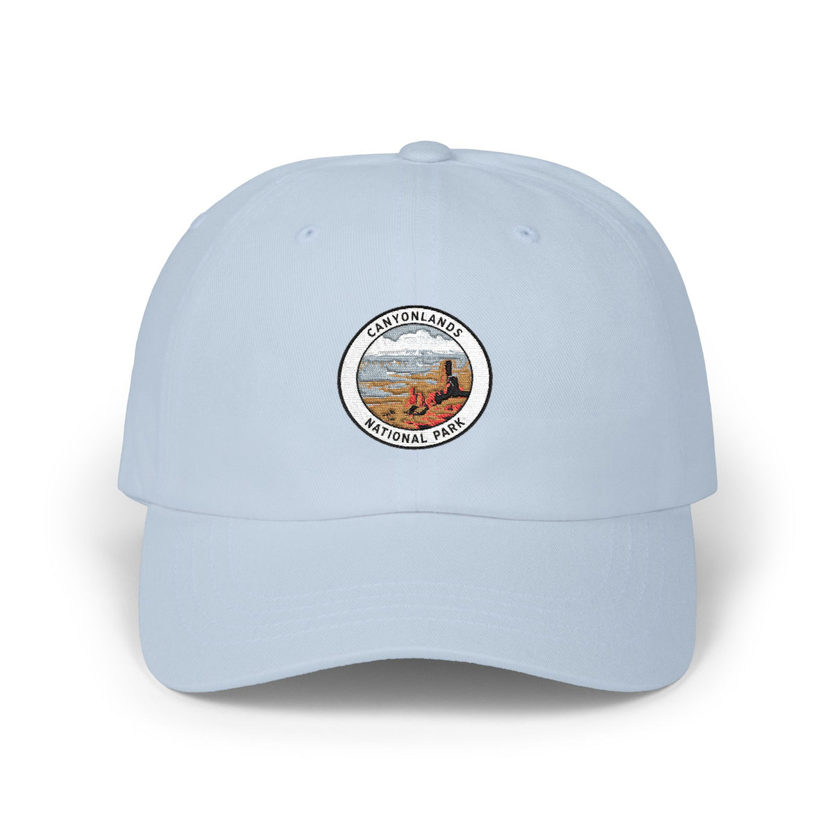A relaxed, classic dad cap embroidered with a small, weathered national park-style patch on the front. The low-profile, unstructured crown and precurved Permacurv® visor give it an easygoing silhouette that slips into everyday life — from sunrise coffee runs to slow weekend hikes. The muted patch art and matching underbill keep the look understated and outdoorsy, while the antique-brass hideaway strap lets you dial the fit just right. Lightweight cotton makes it breathable for long wear; subtle sewn-in label and brand sticker on the visor add authentic, lived-in detail.