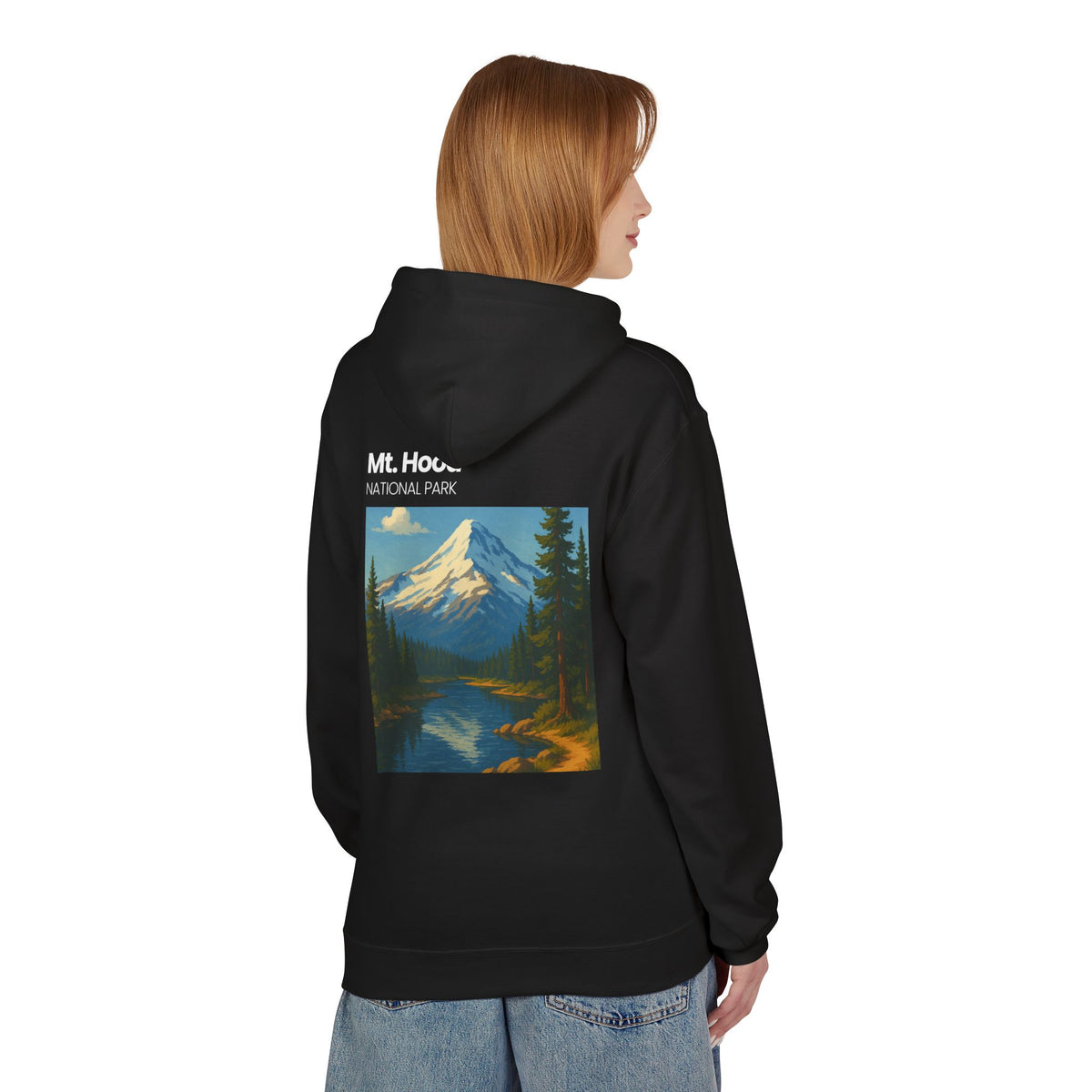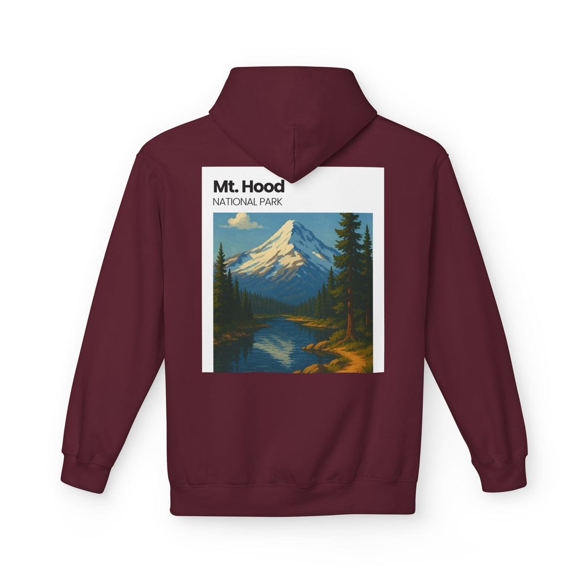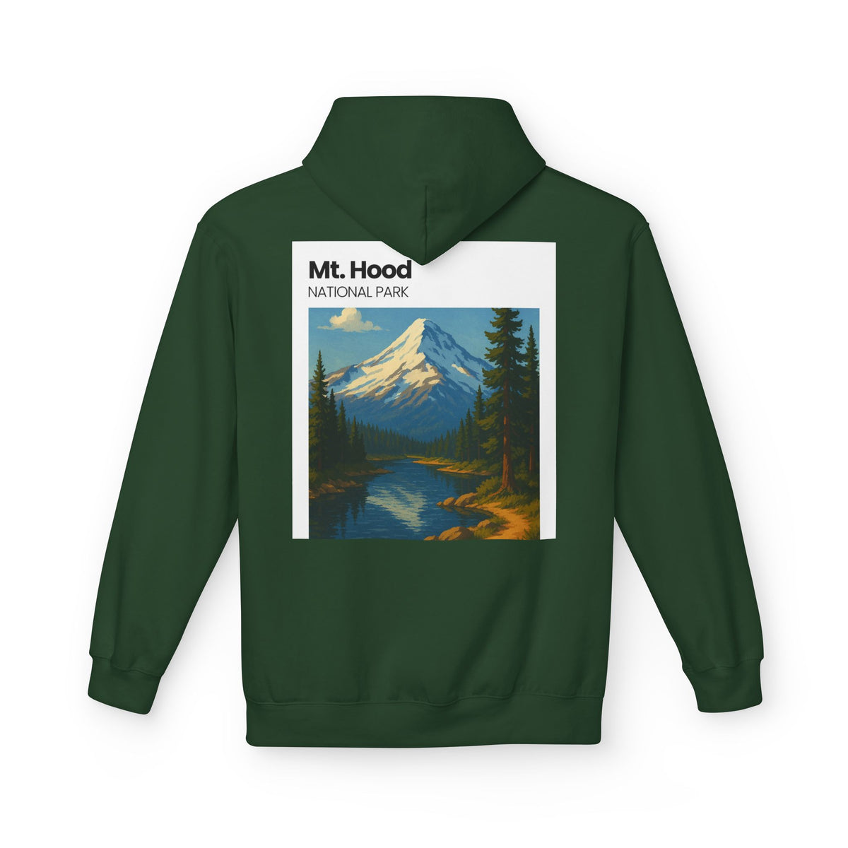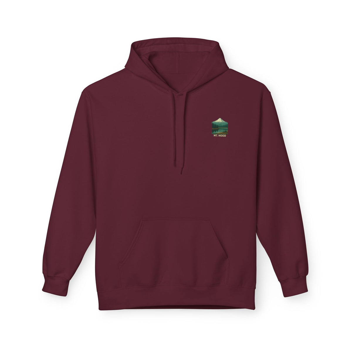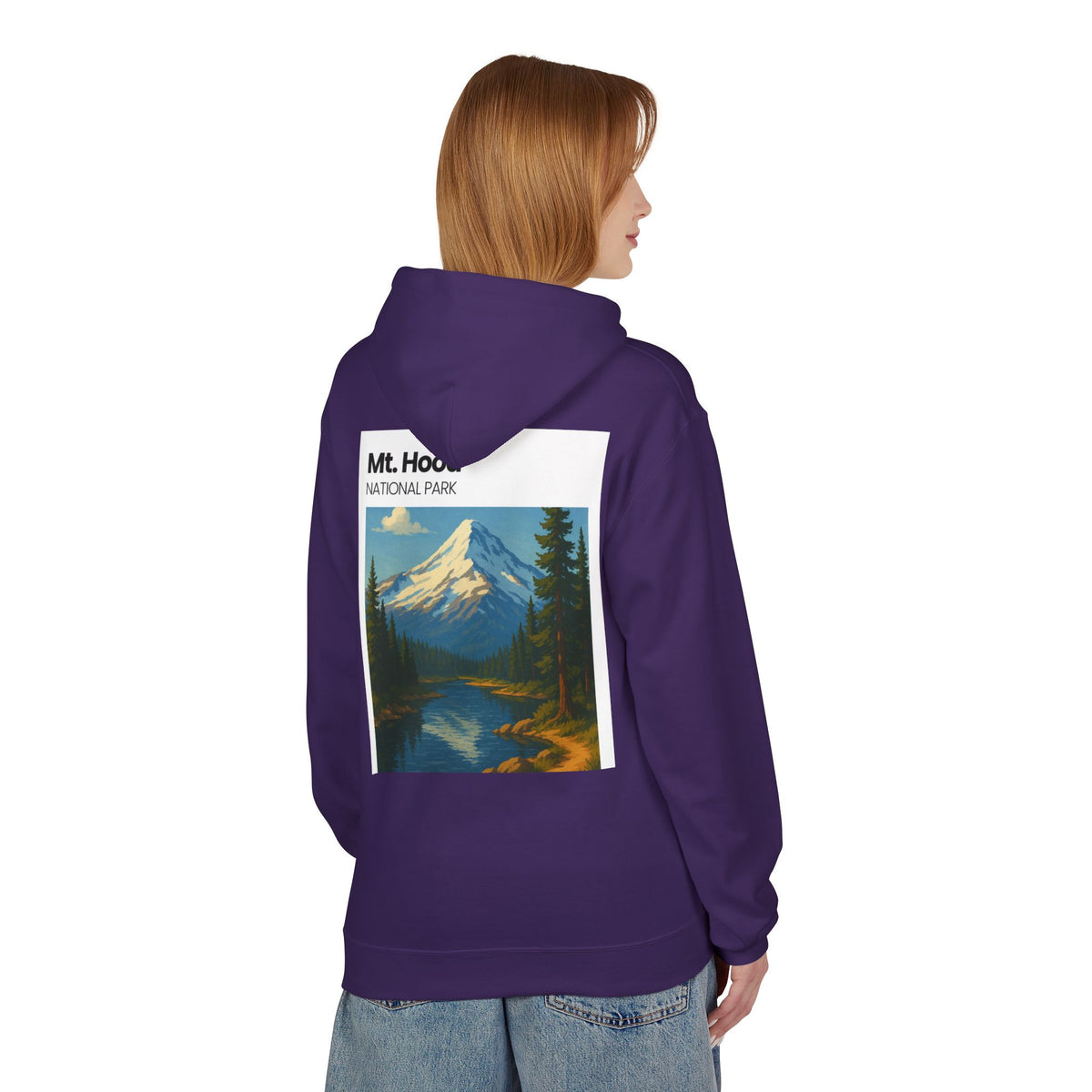 A cozy midweight hoodie that channels quiet mornings on the trail. Soft ring-spun cotton and a plush brushed interior cradle you while a vintage-style Mt. Hood artwork rests across the back — a calm reminder of evergreen slopes, misty reflections, and the slow hush of the forest. Dropped shoulders and a classic fit let you layer easily over tees or base layers. Wear it on cooler campsite breakfasts, weekend drives to the trailhead, or evenings around a small fire when conversation drifts to route plans and sunrise views. The small chest emblem keeps the look subtle up front while the larger back print tells the full story.