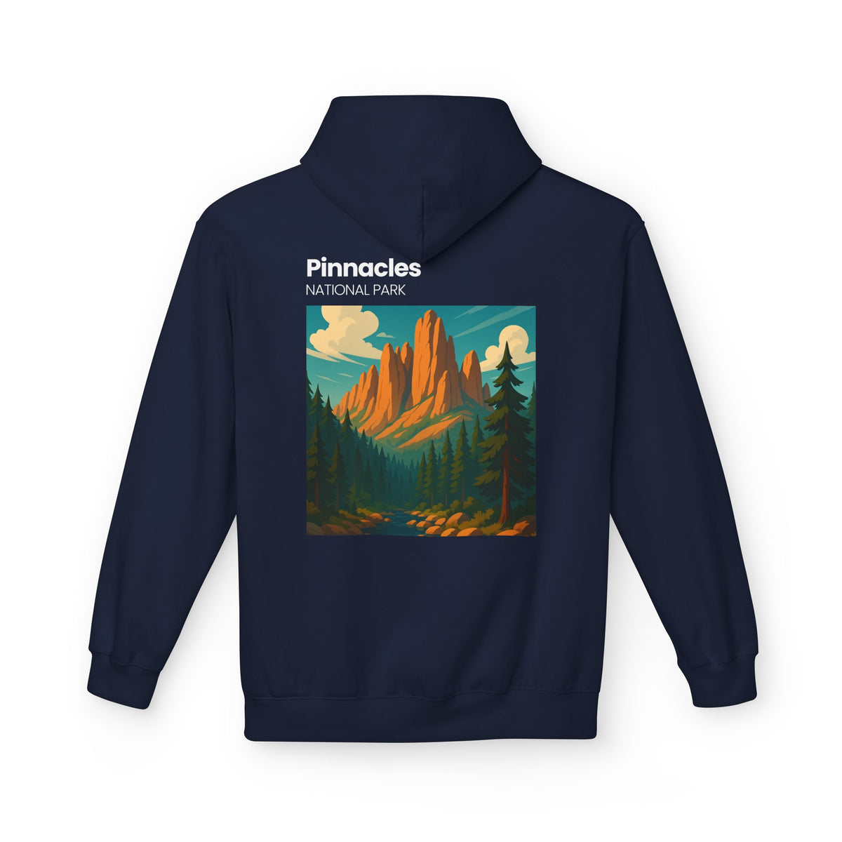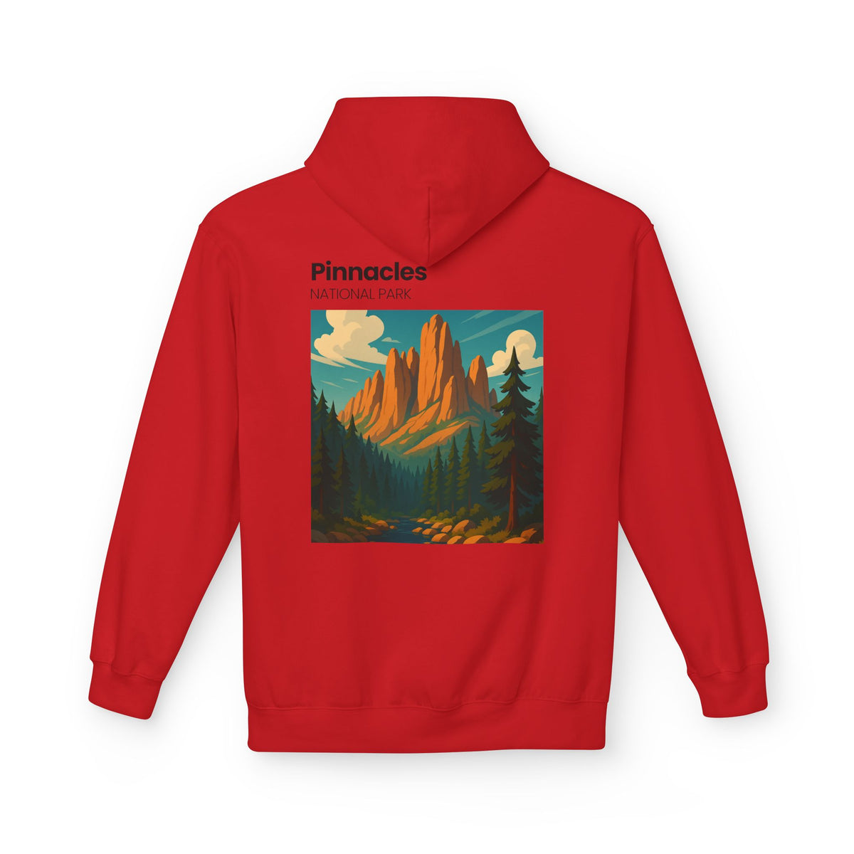 A soft, midweight hoodie that feels like a familiar trail jacket and a quiet campfire at dusk. The front bears a small, sun-warmed emblem over the heart, while the back opens into a bold, vintage-style postcard scene of jagged pinnacles and evergreen slopes. Wear it on early-morning drives to trailheads, slow hikes when the air is crisp, or evenings around a backcountry lantern. The dropped shoulders and roomy pouch pocket create relaxed movement, and the two-piece, jersey-lined hood adds warmth without bulk. Thoughtfully made with OEKO-TEX and socially conscious manufacturing, this hoodie pairs outdoor nostalgia with everyday comfort.
