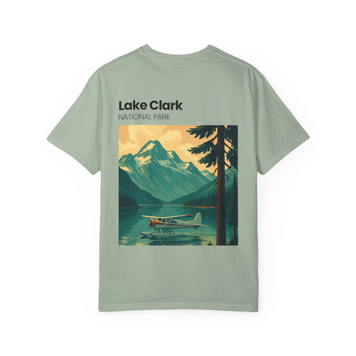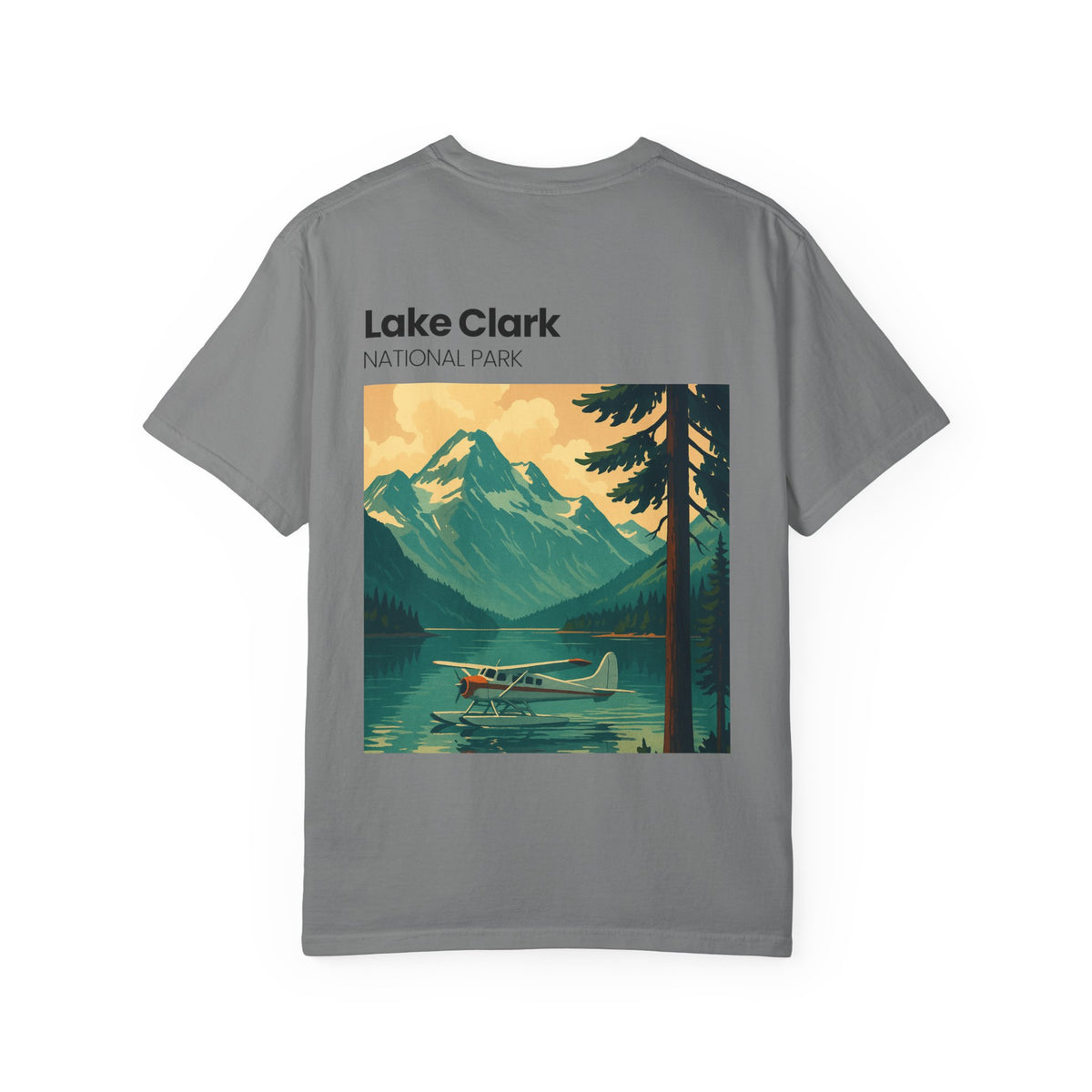 Soft, garment-dyed cotton with a relaxed fit and a vintage national park vibe. This tee carries a small chest patch and a bold back print that evokes quiet mornings on alpine water—mountains, spruce silhouettes, and a floatplane waiting at the dock. It’s the kind of shirt you reach for when you want comfort that reads like a memory: lived-in texture, steady stitching, and colors that fade into your everyday rotation without losing character. Wear it on weekend drives, trailhead meetups, or when you’re tracing a map and planning the next escape.