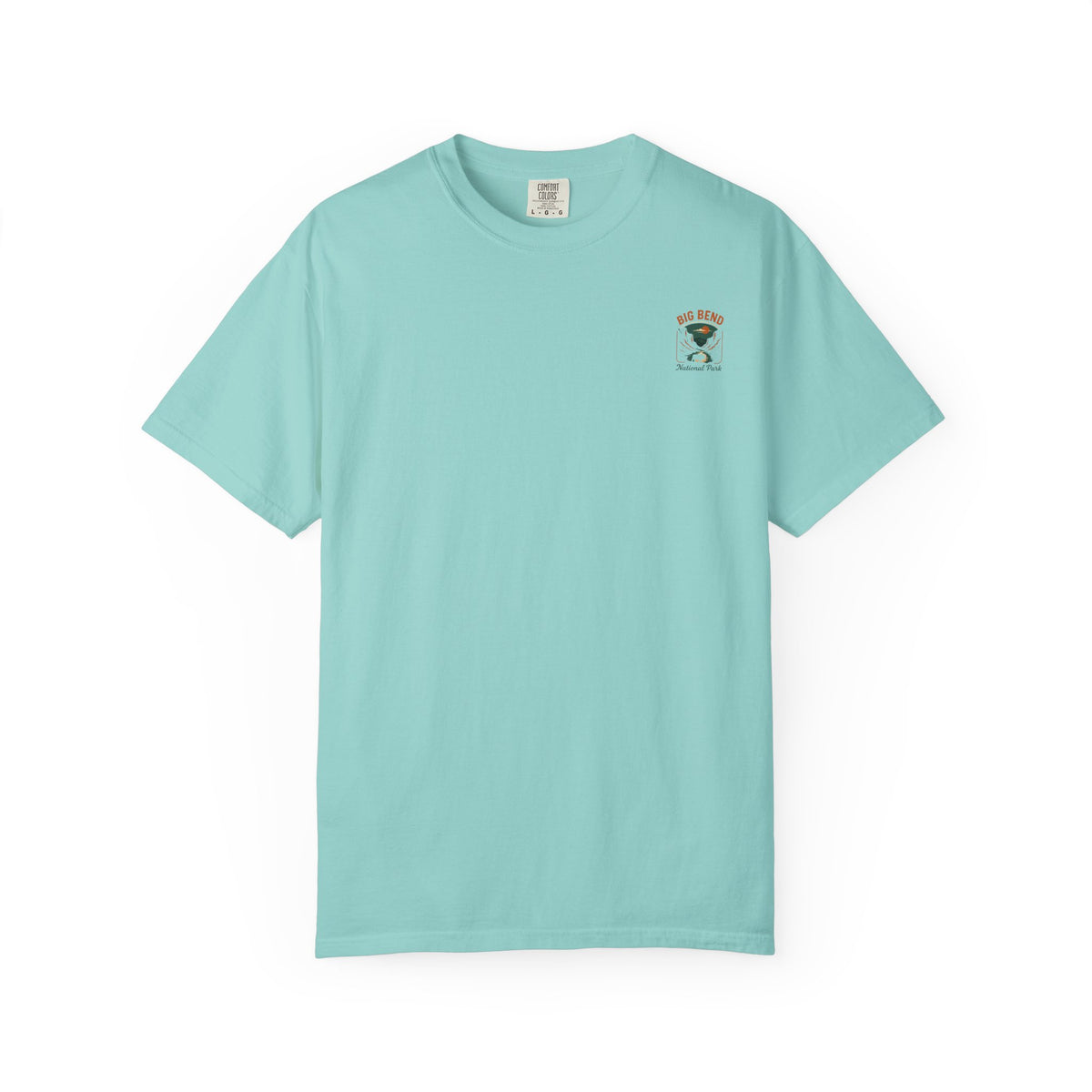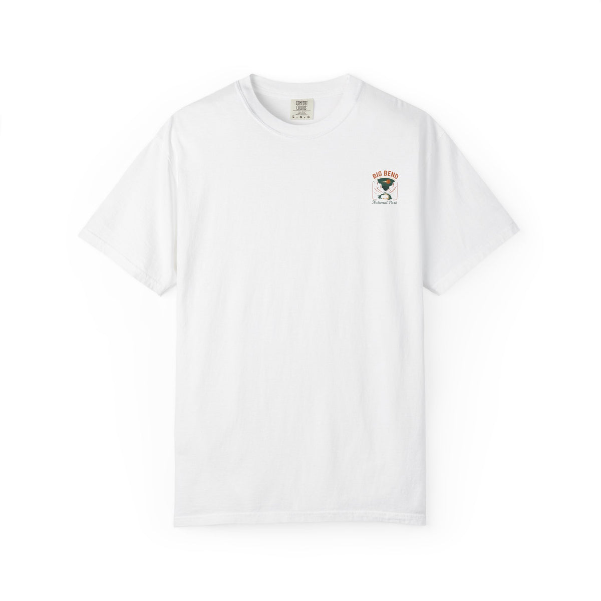 A relaxed, garment-dyed tee that feels like a well-worn favorite from day one. The soft, ring-spun cotton and midweight fabric hold a vibrant, vintage-style park print on the back and a small chest emblem up front. Wear it on trailheads, road trips, or slow afternoons at a campground — it layers easily and carries an outdoorsy, nostalgic mood that pairs with denim, hiking shorts, or a light flannel. The relaxed fit and pre-shrunk construction keep it comfortable after repeated wears, while the tubular knit and double-needle stitching give it simple, durable shaping you can rely on.