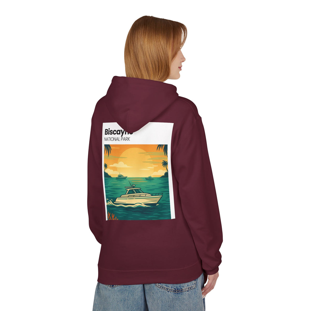 Biscayne National Park Boat Sunset Hoodie | Nautical Tropical Graphic - S / Maroon
