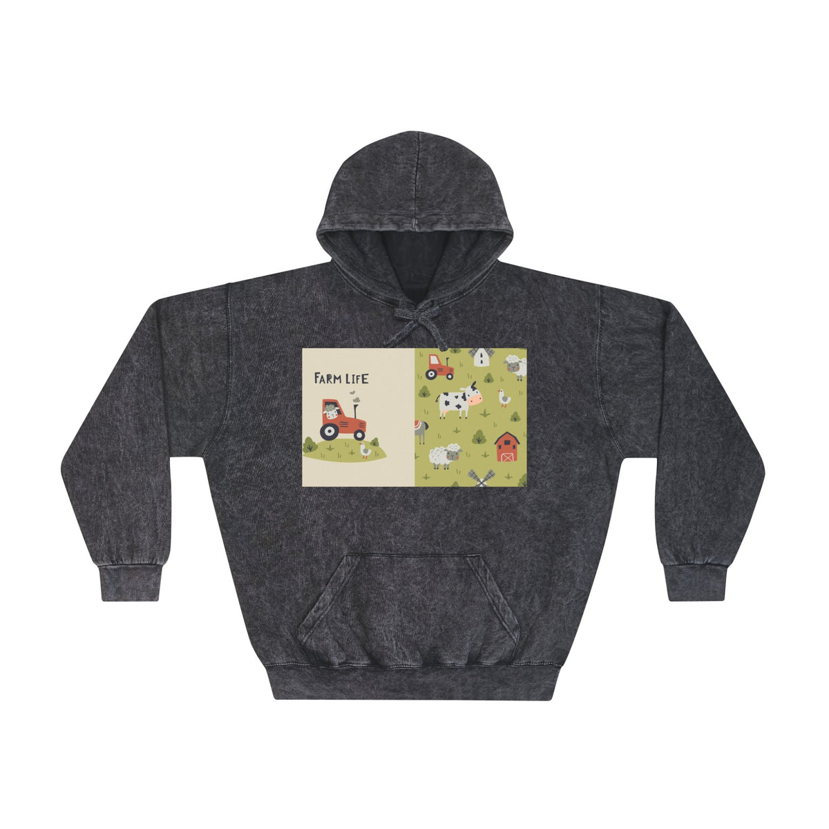Farm Life Unisex Mineral Wash Hoodie - Cozy Farm-Themed Sweatshirt for All Seasons