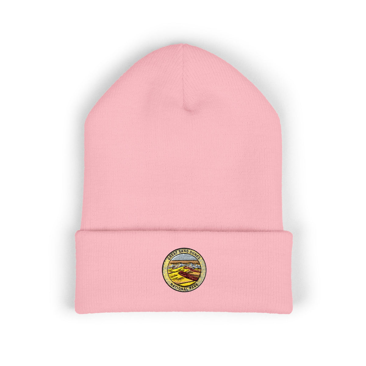 Great Sand Dunes Sunset Mountain Patch Beanie | Embroidered Cuffed Beanie