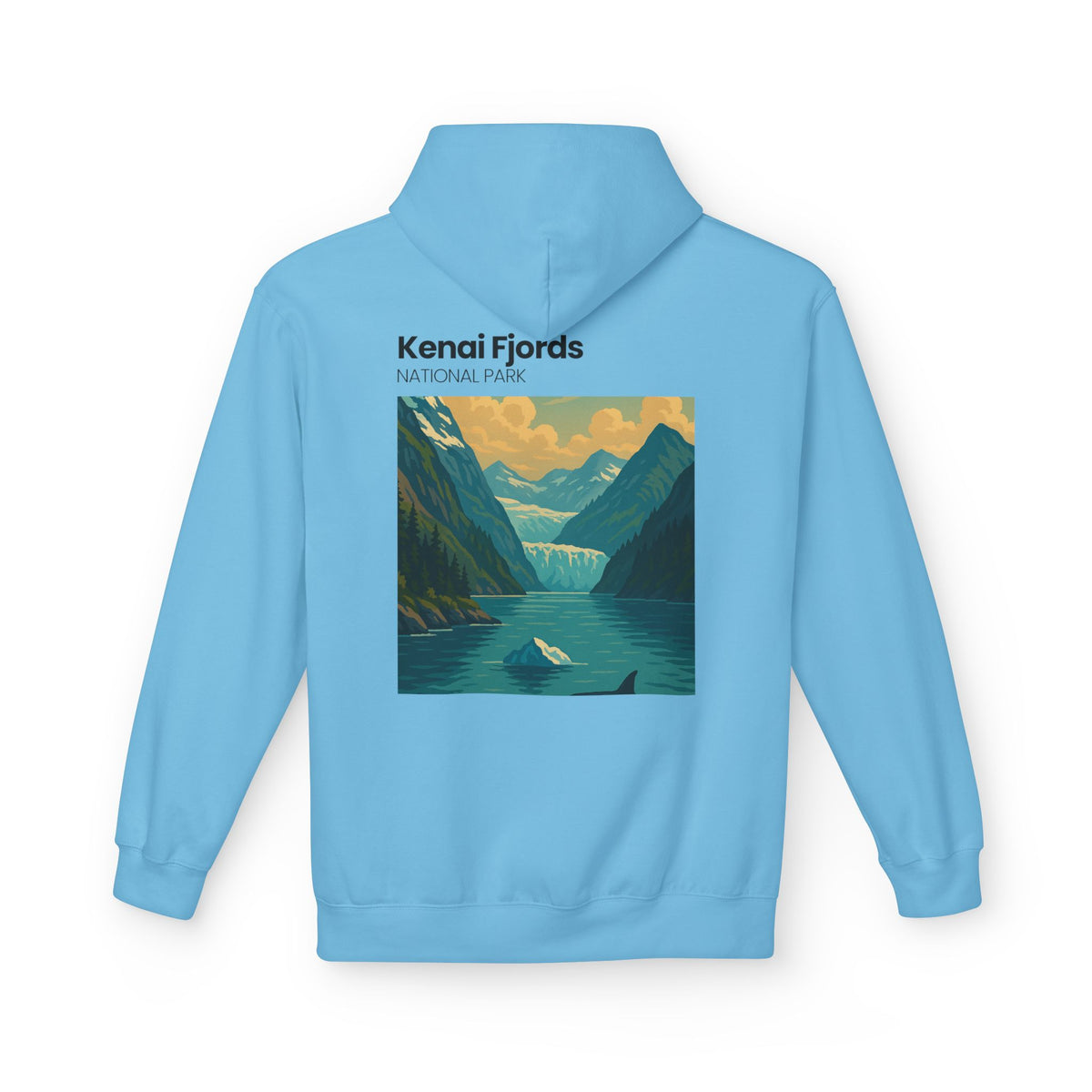This midweight hoodie carries a quiet, exploratory energy — clean white fleece with a small chest emblem and a bold travel-poster style print across the back that reads “Kenai Fjords National Park.” It feels like slipping into a warm layer after a misty morning on the water: the hood holds heat, the pouch welcomes cold hands, and the relaxed, dropped-shoulder cut moves easily with you. The design evokes glacier-blue fjords, distant peaks, and the hush of open water — a wearable memento for people who collect places instead of possessions. Thoughtfully made with OEKO-TEX materials and socially conscious manufacturing, it balances vintage park-poster charm with responsible production.