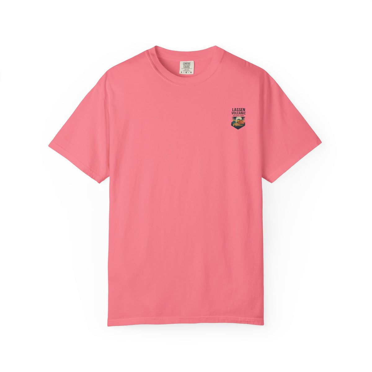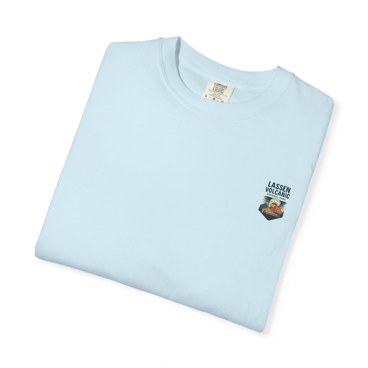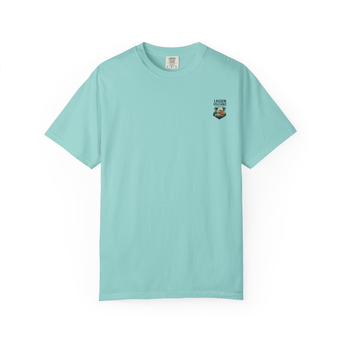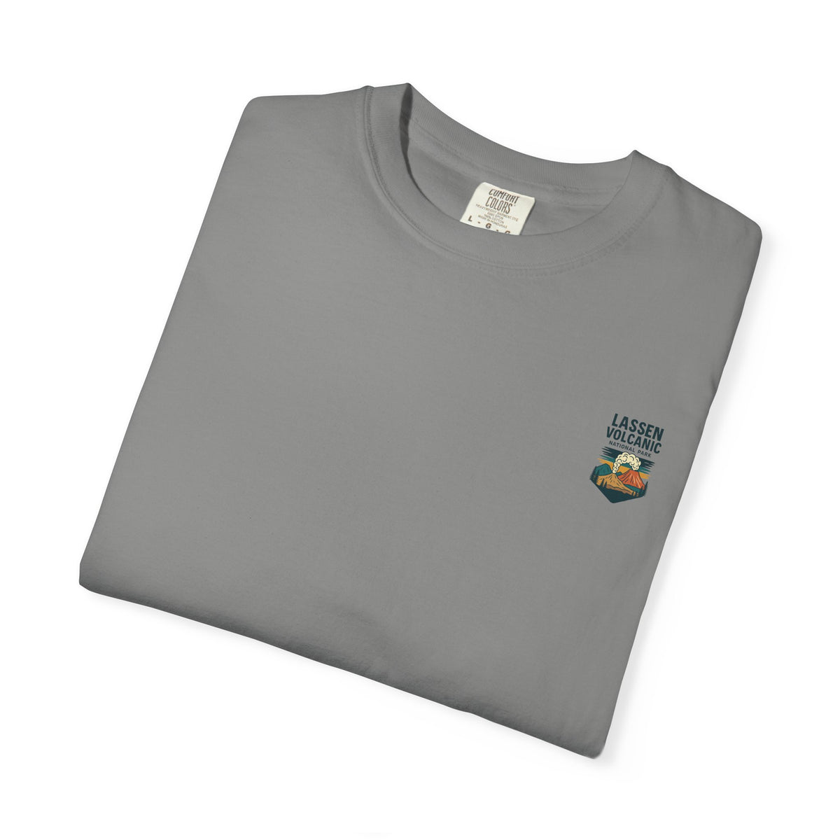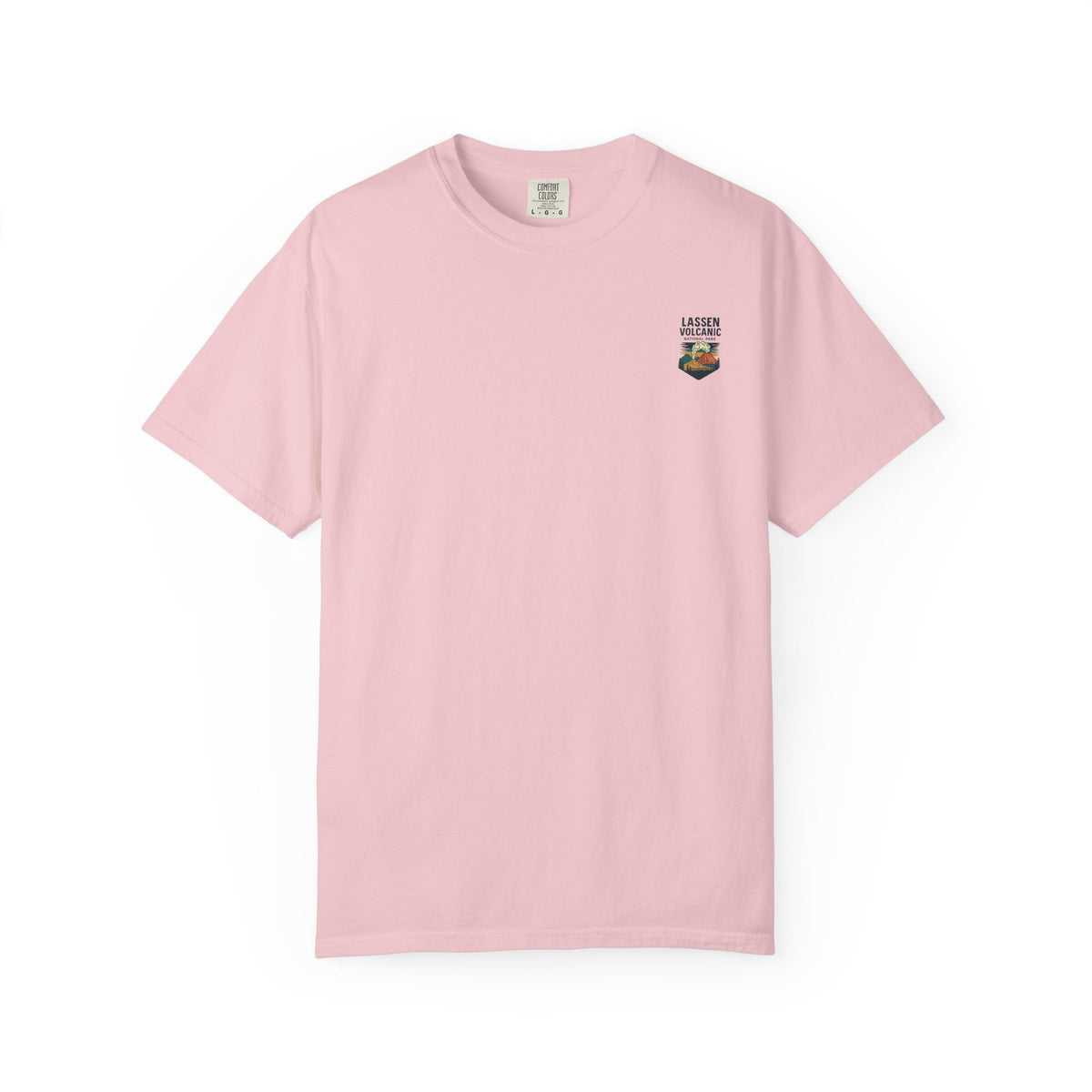 A relaxed, garment-dyed tee that feels lived-in from the first wear. The front carries a small chest emblem while the back showcases a vivid, retro-style illustration of Lassen Volcanic National Park—smoking peak, pine silhouettes, and sunlit clouds rendered in warm, earthy tones. The medium-weight cotton holds the print’s color nicely and the relaxed cut layers easily over a flannel or under a jacket for cool mornings on the trail. Wear it to remind yourself of big skies, smoky ridgelines, and the slow hush of forested campsites.