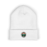 A soft 12" cuffed beanie with a small embroidered patch that carries a quiet outdoorsy energy. The stretchy acrylic knit hugs your head while the cuff adds warmth and a subtle, structured silhouette. The embroidered emblem—faded greens and warm sunset tones—feels like a weathered patch found on a well-traveled jacket, giving the beanie personality without shouting. Lightweight yet insulating and made from hypoallergenic turbo acrylic, it layers easily under hoods or wears alone on crisp mornings. Wear it on early hikes, slow coffee runs, or evenings around a backyard fire to add a little handcrafted character to everyday outfits.