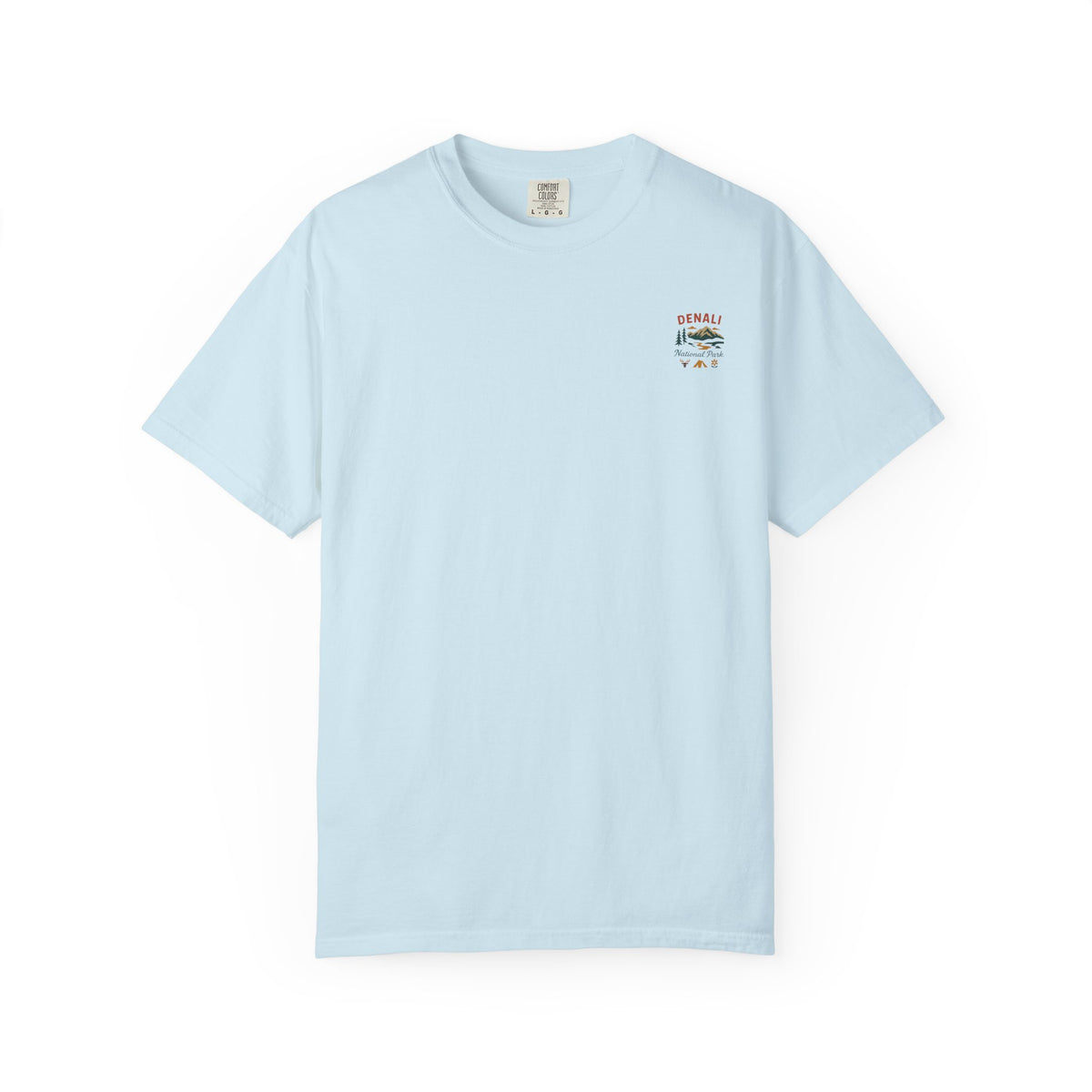A soft, garment-dyed tee that feels lived-in from the first wear. Lightweight but substantial, it drapes with a relaxed silhouette and a subtle vintage wash that develops character over time. The small chest motif adds a quiet, personal touch while the tubular construction and double-needle seams keep the tee looking clean and holding up to repeated wear. Wear it on slow mornings, road trips, or layered under a flannel for campfire nights — it’s the kind of shirt that becomes part of your regular rotation, not a showpiece.