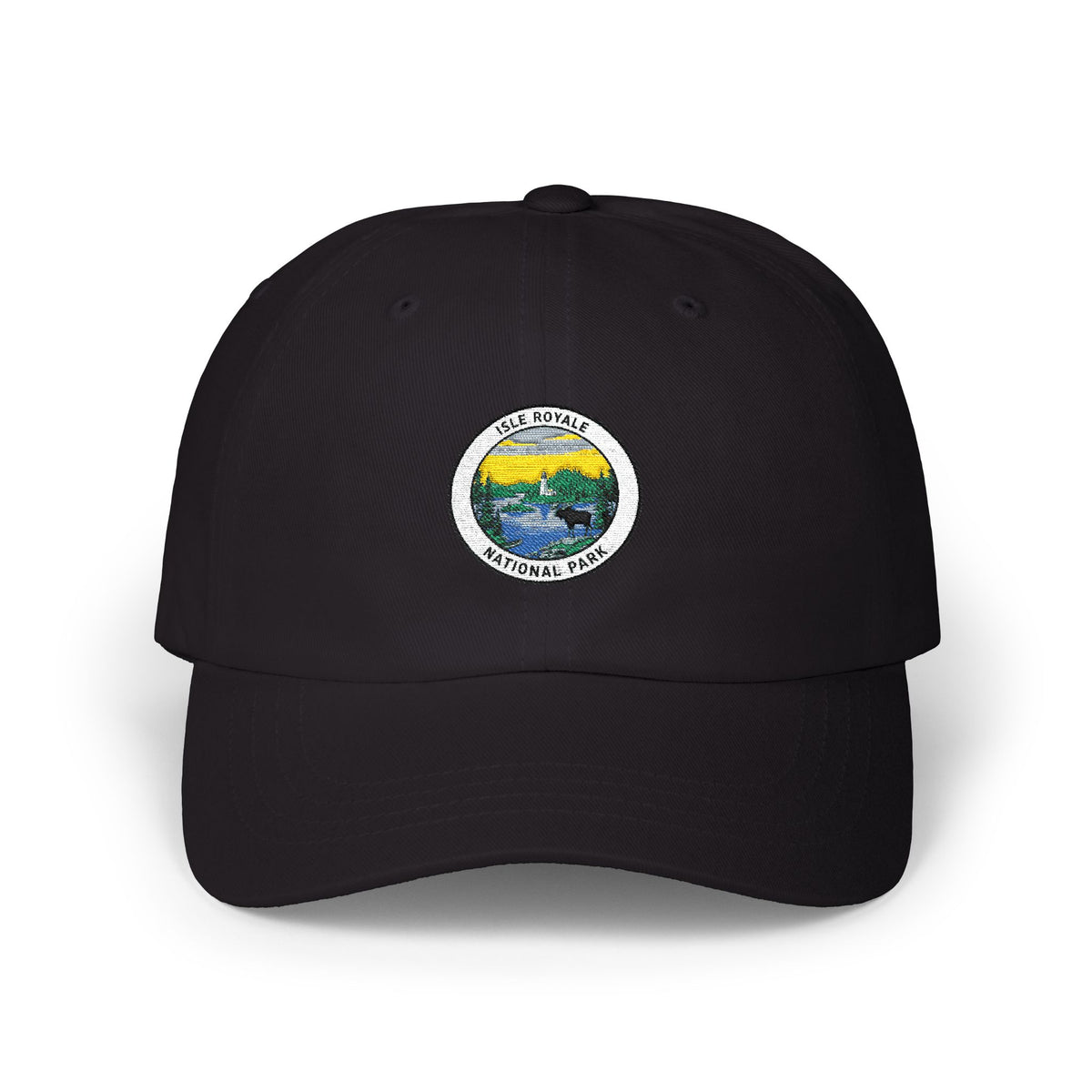 Yellow Mountain Lake Patch Cap | Dad Hat with Scenic Nature Logo - Black / One size